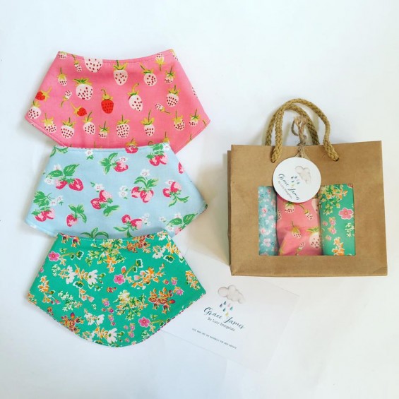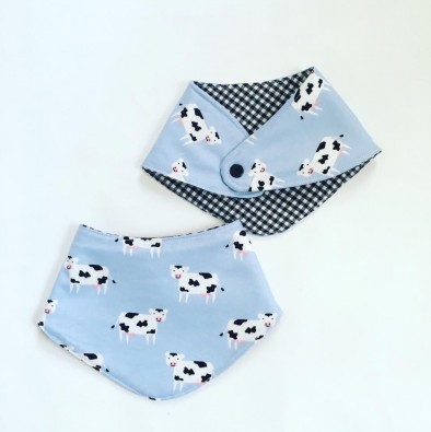 Bibs are £7.50 each or £5.50 for 2+ bibs. They are reversible, organic cotton dribble bibs.